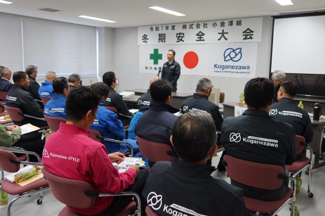 令和7年度の冬期安全大会および、室蘭開発建設部発注工事「一般国道235号苫小牧市苫小牧道路維持除雪外一連工事」の安全作業のご祈祷をおこないました。