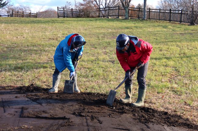 11月12日、平取町内の二風谷ダム敷地内においてステージを改良する地域貢献活動を実施しました。
